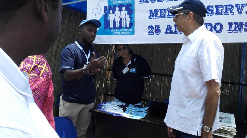 A presença do INSS naquele evento, fez-se através de um stand no qual foram disponibilizados aos utentes do Sistema e público no geral, serviços que possibilitavam a inscrição de contribuintes e beneficiários, através do Sistema de Informação da Segurança Social de Moçambique (SISSMO), a validação de inscrição e consulta da situação de processos de pedido de prestações remetidos em qualquer Delegação Provincial de Segurança Social.
