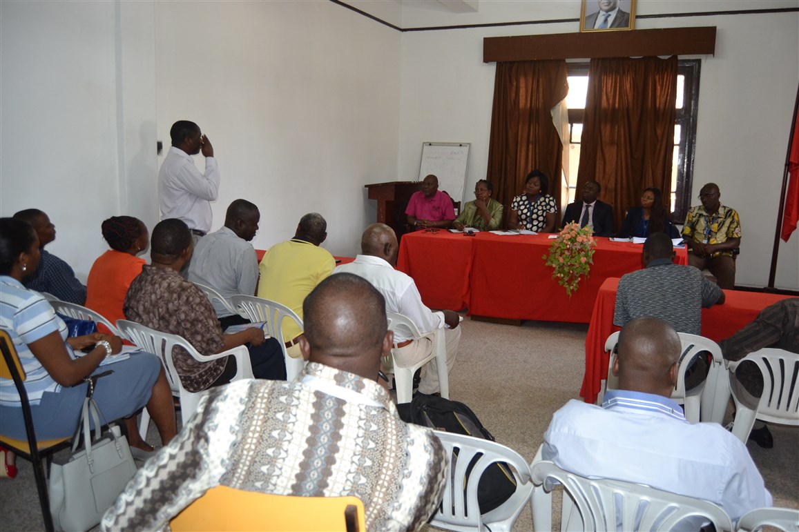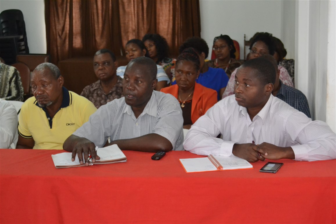 Bernardo Matsinhe (à esquerda) e António Tivane (à direita) intervindo no encontro sobre os TCP, sob o olhar atento dos participantes
