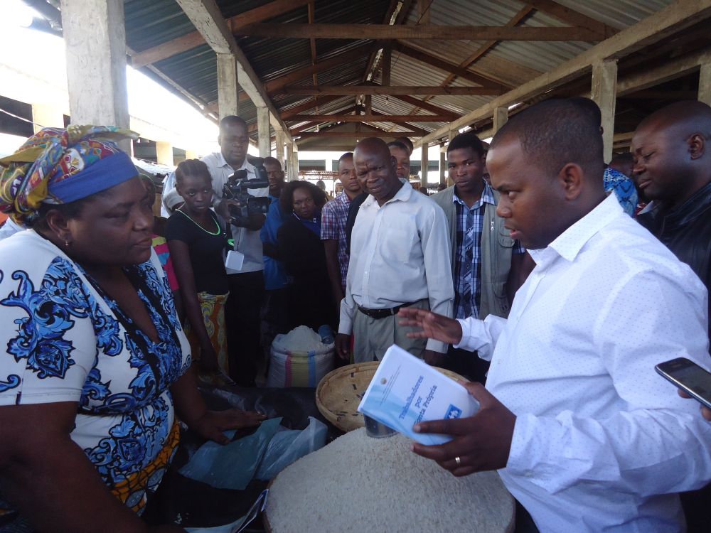 Zambézia – (23/06/2016) – O Vice-Ministro do Trabalho, Emprego e Segurança Social, Oswaldo Petersburgo, efectuou palestras em alguns mercados da província da Zambézia, onde sensibilizou os vendedores a inscreverem-se no regime dos Trabalhadores por Conta Própria (TCP), como forma de garantir a sua protecção social.
