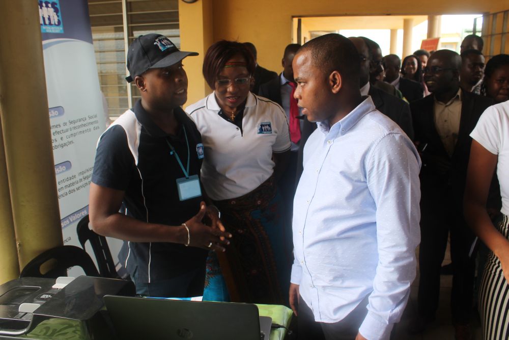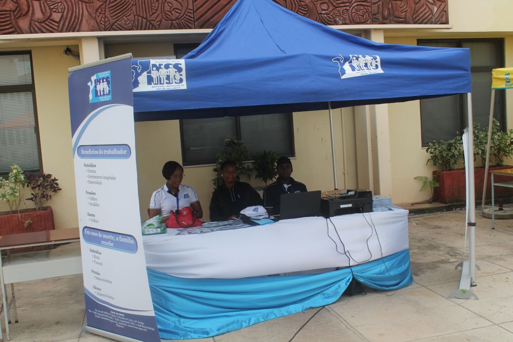 Na exposição realizada ontem, alusiva ao lançamento da Campanha “Vaga Não Se Paga”, promovida pelo Instituto Nacional de Emprego, no qual tomaram parte jovens estudantes, empregadores, agências privadas de emprego, os técnicos do INSS colocaram à disposição dos visitantes diversos serviços e informações sobre a Segurança Social.