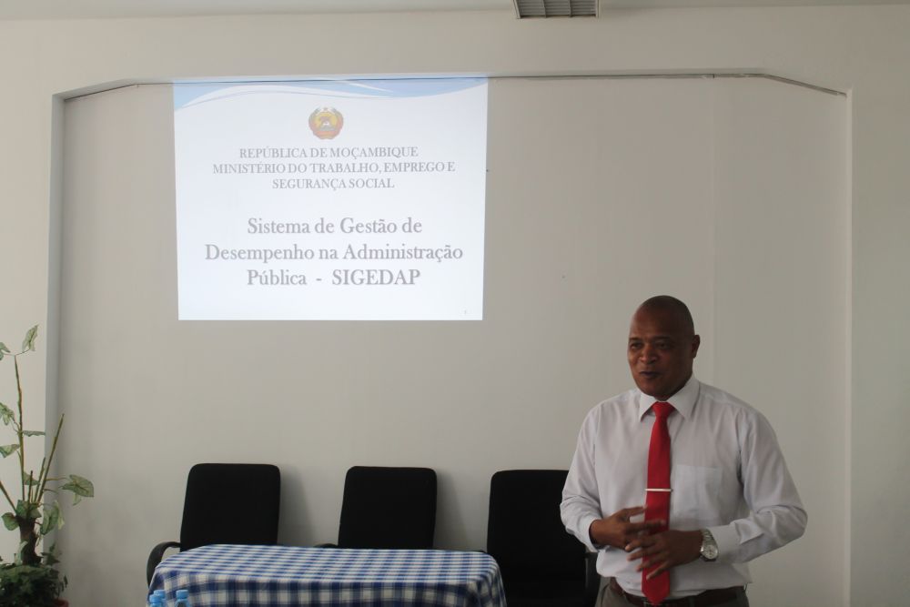 Maputo – (07/12/2016) – Funcionários do INSS, em representação dos Serviços Centrais e da Delegação da Cidade de Maputo, foram capacitados na manhã desta Quarta-feira, em matérias de SIGEDAP (Sistema de Gestão de Desempenho na Administração Pública).