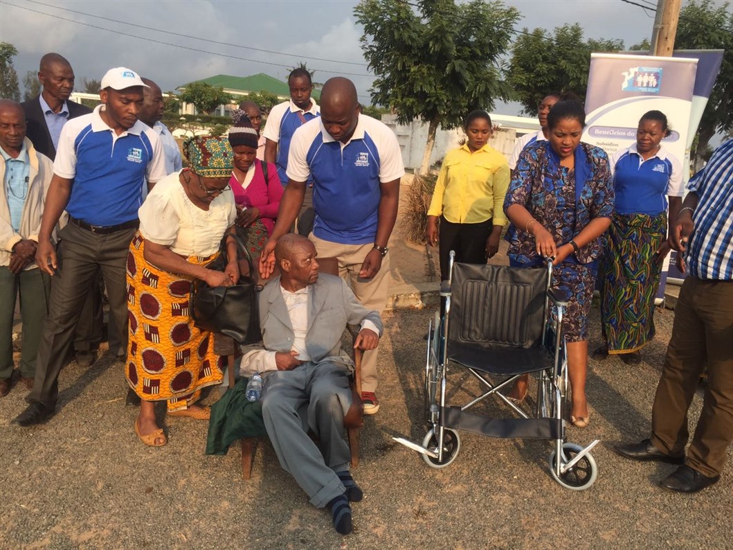Para além de receber o material de construção, um dos pensionistas padecendo de problemas de locomoção, no distrito de Massinga, recebeu uma cadeira de rodas para facilitar a sua movimentação.