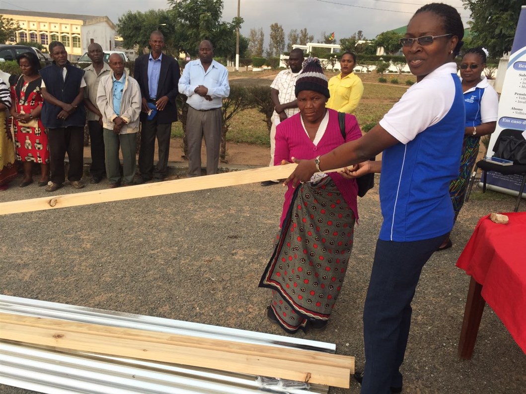 Inhambane – (28/09/2017) – 30 pensionistas do Sistema afectados pelo ciclone Dineo, que assolou a província de Inhambane, no mês de Fevereiro último, receberam recentemente material de construção diverso, oferecido pela delegação provincial do INSS, no quadro da comemoração dos 28 anos da Institucionalização do Sistema de Segurança Social em Moçambique, assinalados a 18 de Setembro.