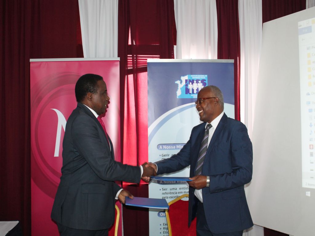 Na assinatura, que acontece durante a abertura da Reunião Nacional do INSS, que decorreu nos dias 8 e 9 de Novembro da cidade da Matola, província de Maputo, o INSS esteve representado pelo PCA, Francisco Mazoio e o Millennium Bim pelo administrador, Moisés Jorge.