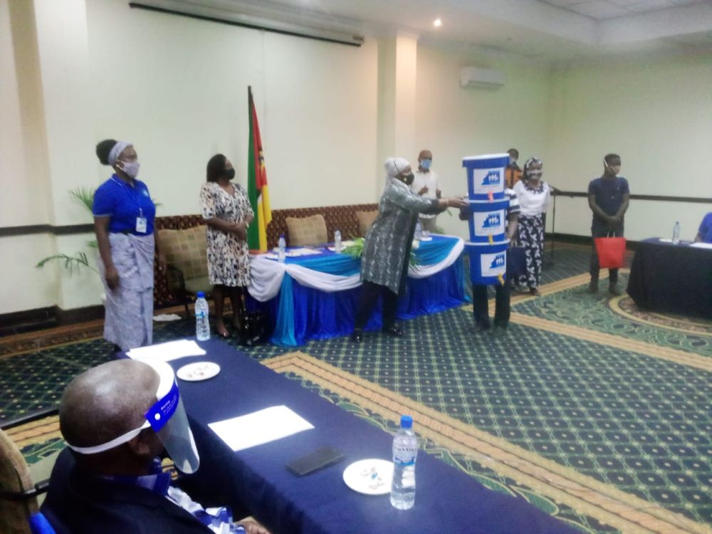 Margarida Adamugy Talapa procedeu igualmente a entrega ao Secretário de Estado de Cabo Delgado, no âmbito das acções de prevenção da pandemia da Covid-19, de 20.000 máscaras, 200 baldes com torneiras e igual número de bacias e 50 caixas de sabão, em apoio às pessoas necessitadas.