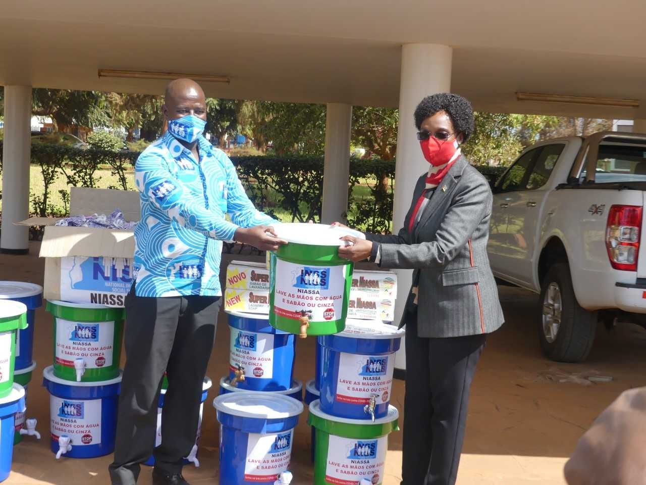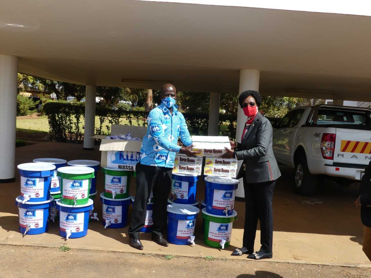 Niassa – (08/07/2020) – A delegação provincial do INSS ofereceu ao Governo do Niassa duas mil máscaras, 40 baldes e 10 caixas de sabão, no âmbito da prevenção e combate à pandemia do Covid-19.