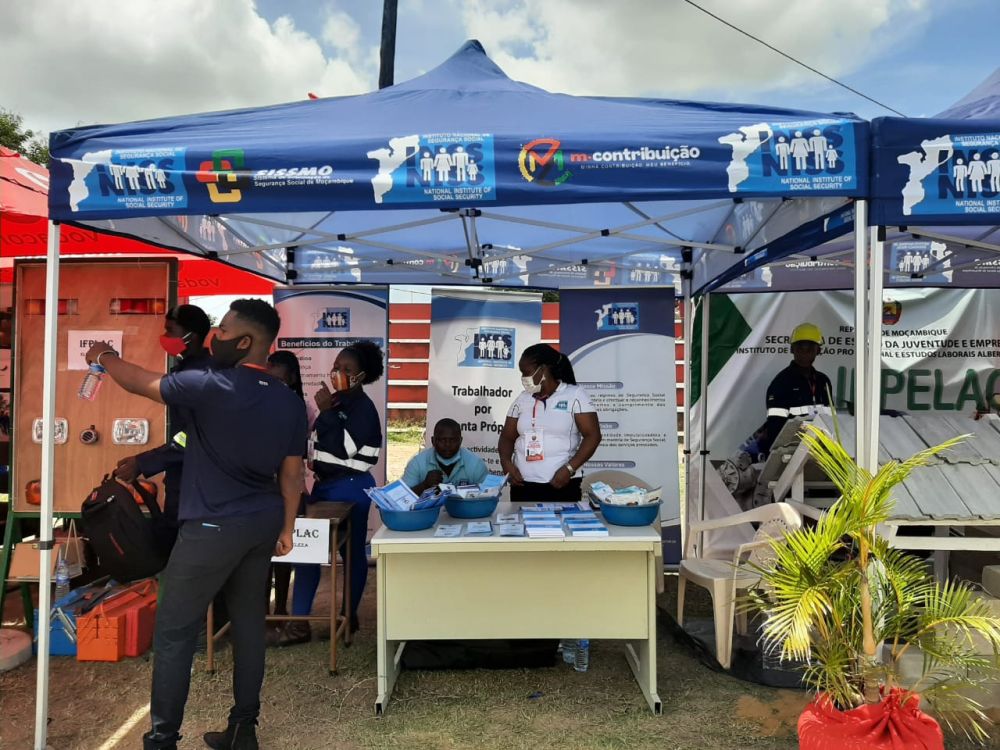 No local, os técnicos do INSS atenderam, com recurso à plataforma informática SISSMO (Sistema de Informação da Segurança Social de Moçambique) questões relacionadas com a Segurança Social, como é o caso de pedidos de situação contributiva e emissão de cartões de beneficiários, tendo ainda feito a inscrição de alguns Trabalhadores por Conta Própria.