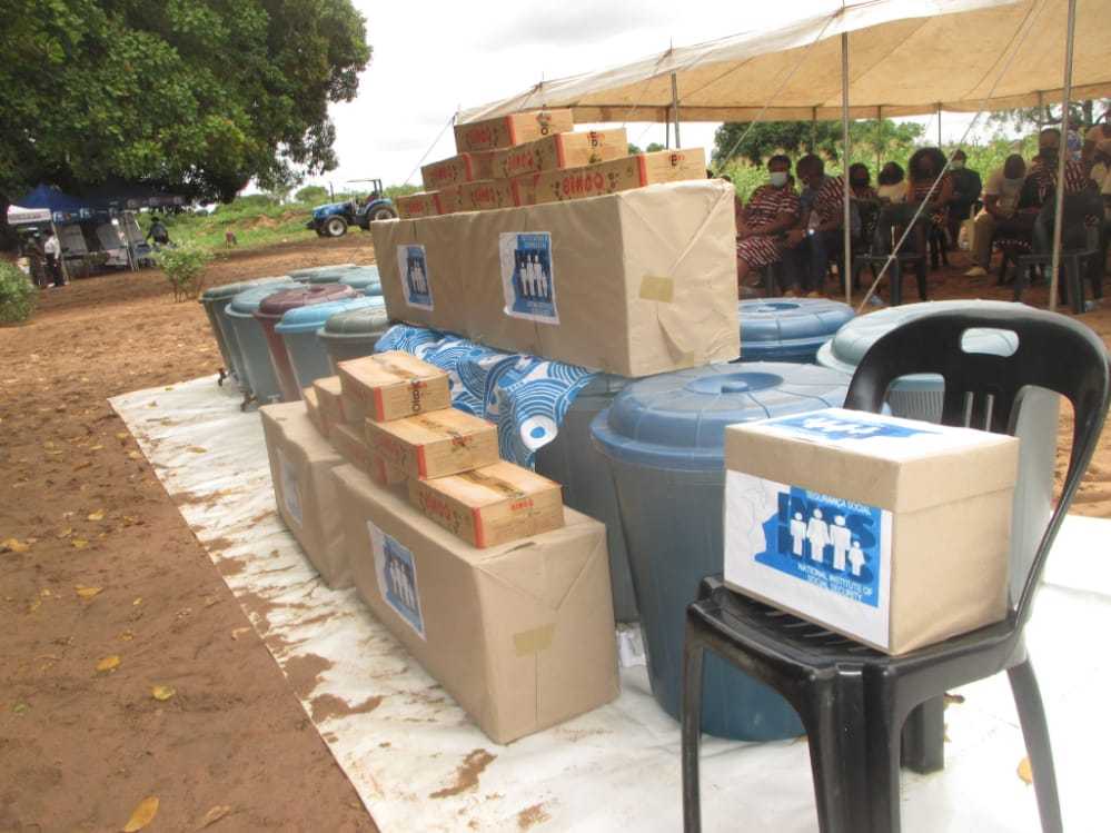 Gaza – (23/12/2020) – A Delegação Provincial do INSS ofereceu ao Conselho dos Serviços Provinciais de Representação do Estado material de prevenção da Covid-19, em apoio às pessoas necessitadas, constituído por 12.000 máscaras de protecção facial, 50 baldes e 50 caixas de sabão.