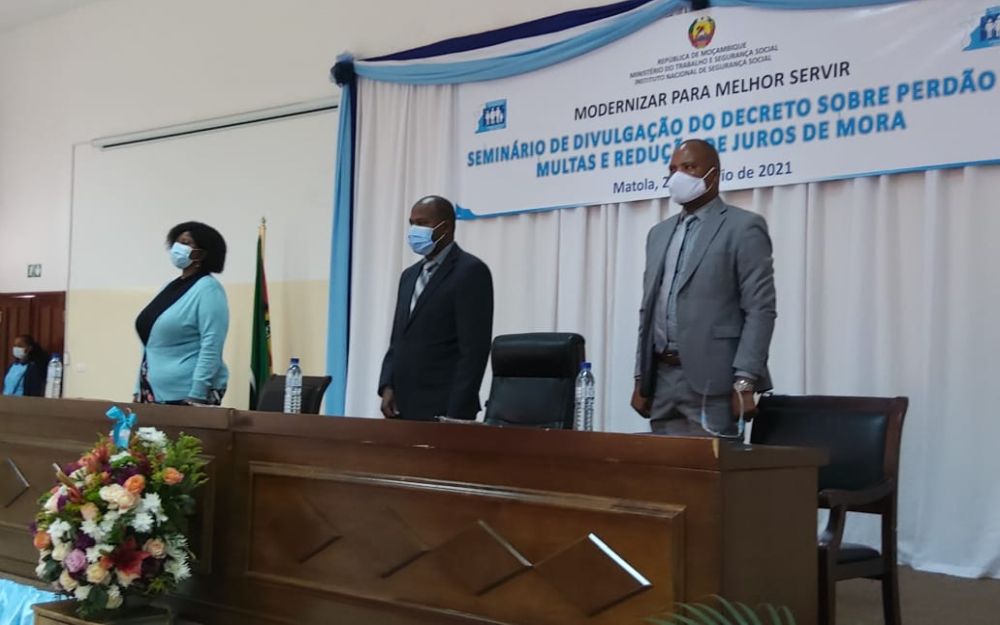 Na ocasião, o Delegado Provincial do INSS da Cidade de Maputo, Rui Guimarães, fez uma contextualização da situação geral da dívida ao nível daquela parcela do País, tendo realçado que, para além de contribuintes, o decreto abrange os Trabalhadores por Conta Própria. Apelou aos contribuintes devedores para que adiram ao perdão de multas e redução de juros de mora, como forma de terem a situação contributiva regularizada.