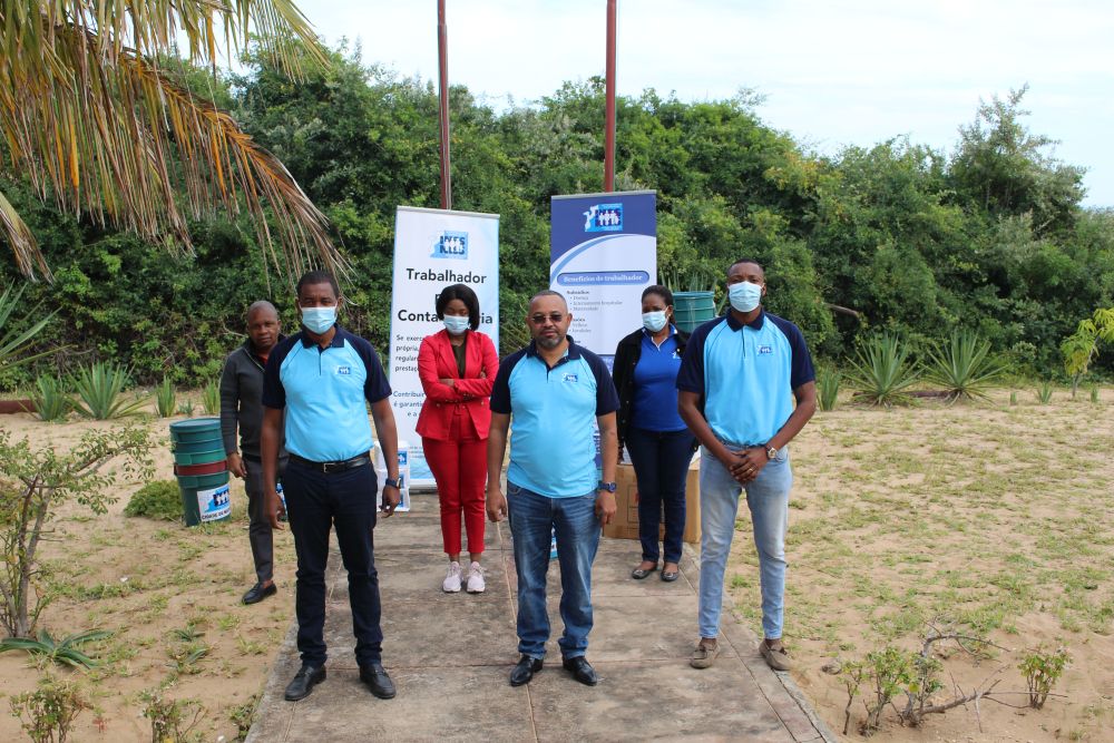 Cidade de Maputo – (27/07/2021) – A Delegação do INSS ao nível da Capital do País ofereceu no Sábado, dia 24 de Julho, ao Distrito Municipal KanNaka, diverso material de higiene, no quadro das acções de combate e prevenção contra a Covid-19.