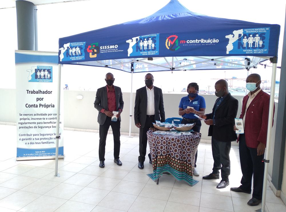 Na interacção com os visitantes, a equipa técnica da Delegação Provincial do INSS, liderada pelo Chefe do Departamento de Seguro Social, Simão Benjamin Joaquinho, esclareceu sobre as vantagens decorrentes da inscrição e pagamento da contribuições ao Sistema de Segurança Social Obrigatória, tendo ainda distribuído folhetos sobre diversos serviços prestados pela instituição.