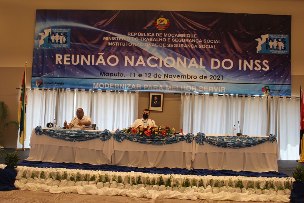 O PCA do INSS fez este pronunciamento na Sexta˗feira, dia 12 de Novembro, no encerramento da Reunião Nacional do INSS, evento, de dois dias, que decorreu sob o lema “Modernizar para Melhor Servir” e que juntou membros do Conselho de Administração e da Direcção-Geral, chefes de departamento central, delegados provinciais e outros quadros do INSS.