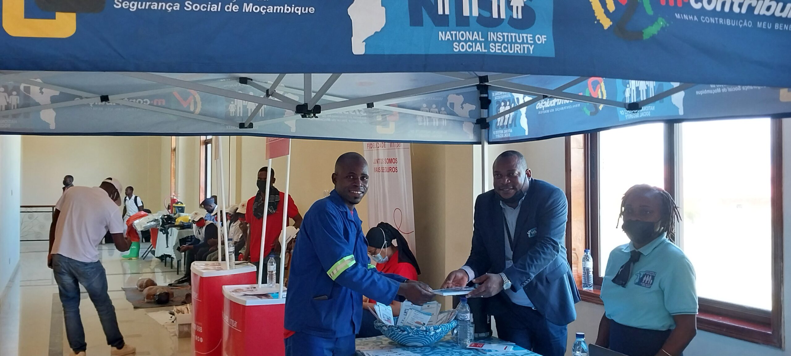 No referido seminário, a delegação provincial do INSS em Sofala destacou uma equipa técnica que promoveu uma exposição dos serviços prestados pela instituição ao público, abordando vários assuntos, dentre os quais a inscrição de TCP, a Manutenção Voluntária no Sistema (MVS), a plataforma simplificada de pagamentos ou de consulta de outras informações no sistema, o vulgo M-contribuições, os passos para o pagamento de guias das contribuições através do M-Pesa e Izi, incluindo a distribuição de desdobráveis, como suporte para o acesso a outras informações e serviços.