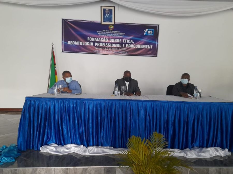 Inhambane – (08/08/2022) – 50 técnicos do INSS, provenientes de todas as delegações provinciais da zona sul do país, nomeadamente das províncias de Maputo, Gaza, Inhambane e da cidade de Maputo, foram capacitados na Cidade da Maxixe, província de Inhambane, em matéria de ética, deontologia profissional e em procurment, de 1 a 5 de Agosto do ano em curso.