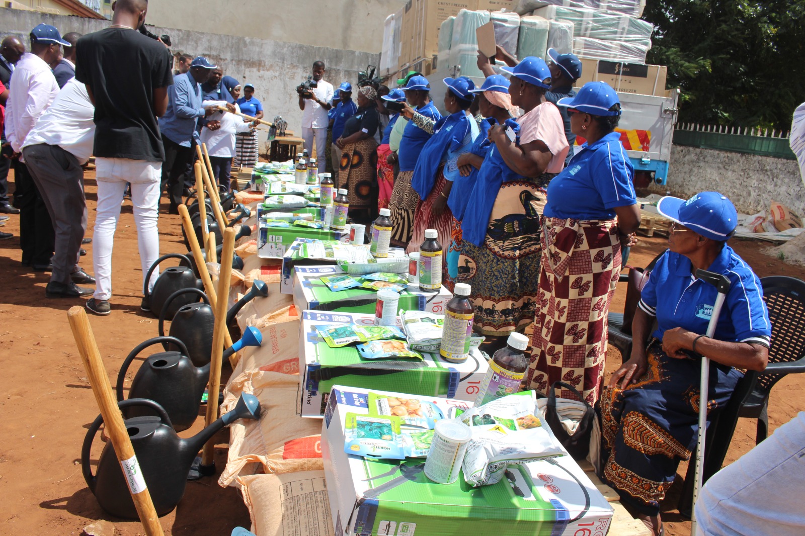 Procedeu, igualmente, a entrega de kits de insumos agrícola, congeladores, colmans e máquinas de costura em apoio ao empreendedorismo dos Trabalhadores por Conta Própria.