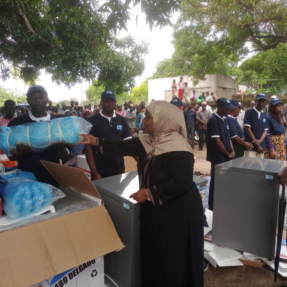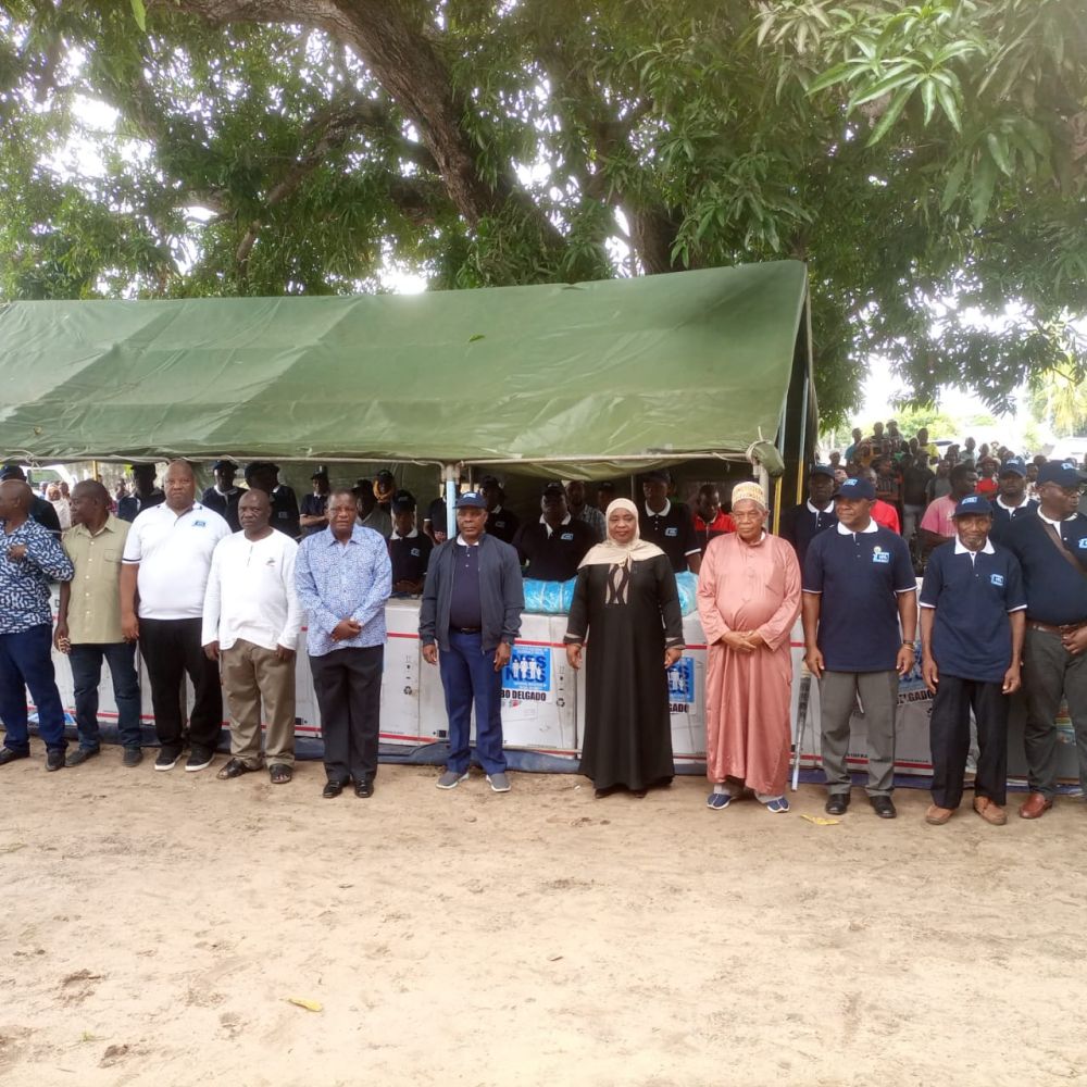 Em Mocímboa da Praia, tal como procedeu no dia anterior no vizinho distrito de Palma, em cerimónia idêntica, a Ministra do Trabalho e Segurança Social ofereceu aos TCP kits de equipamento de pesca, constituído por congeladores para a conservação do pescado e máquinas de costura. Aos pensionistas foram oferecidos produtos alimentícios compostos por açúcar, arroz, farinha de milho, massa esparguete e folhas de chá.