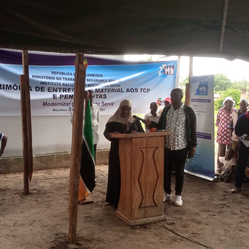 A governante falava durante a cerimónia de lançamento da primeira pedra para a construção das futuras instalações da Delegação Distrital do INSS de Mocímboa da Praia, em que este grupo sócio-económico também esteve presente para testemunhar o acto, bem como para receber um apoio em equipamento de trabalho para o aumento de renda, que é a principal fonte para continuarem a pagar as suas contribuições ao Sistema de Segurança Social.
