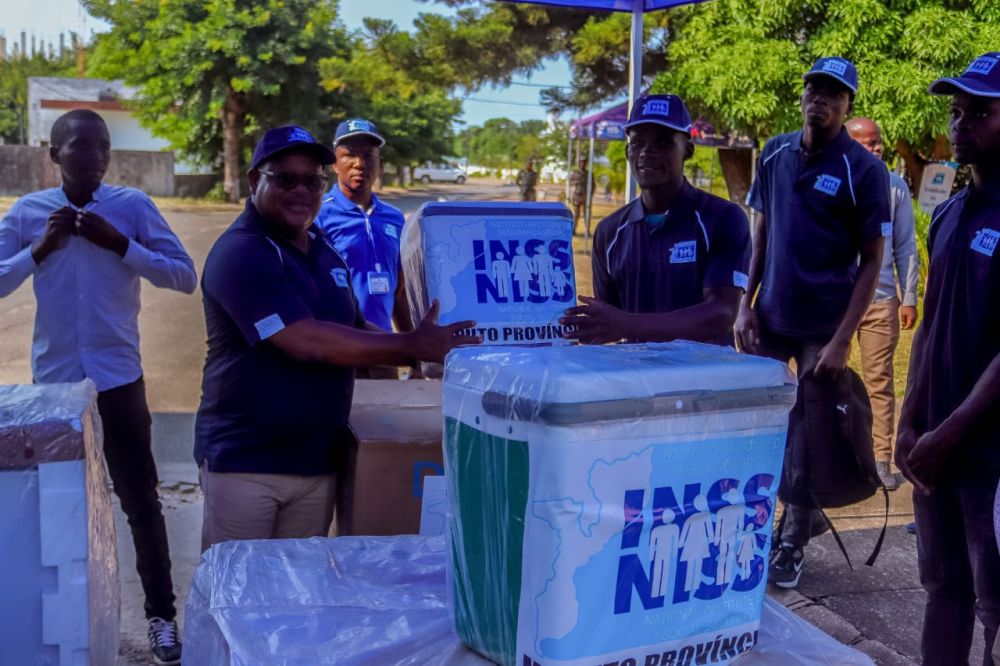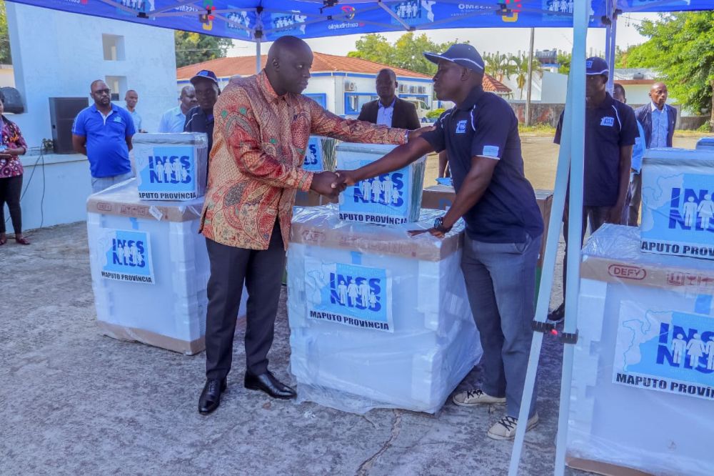 Província de Maputo – (04/04/2023) – 8 pescadores inscritos no regime de Trabalhadores por Conta Própria (TCP), do distrito da Manhiça e que foram vítimas das enxurradas do mês de Fevereiro, receberam congeladores e colmans para a geração de renda, no âmbito do Programa de Acção Sanitária e Social do INSS.