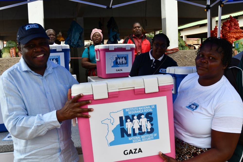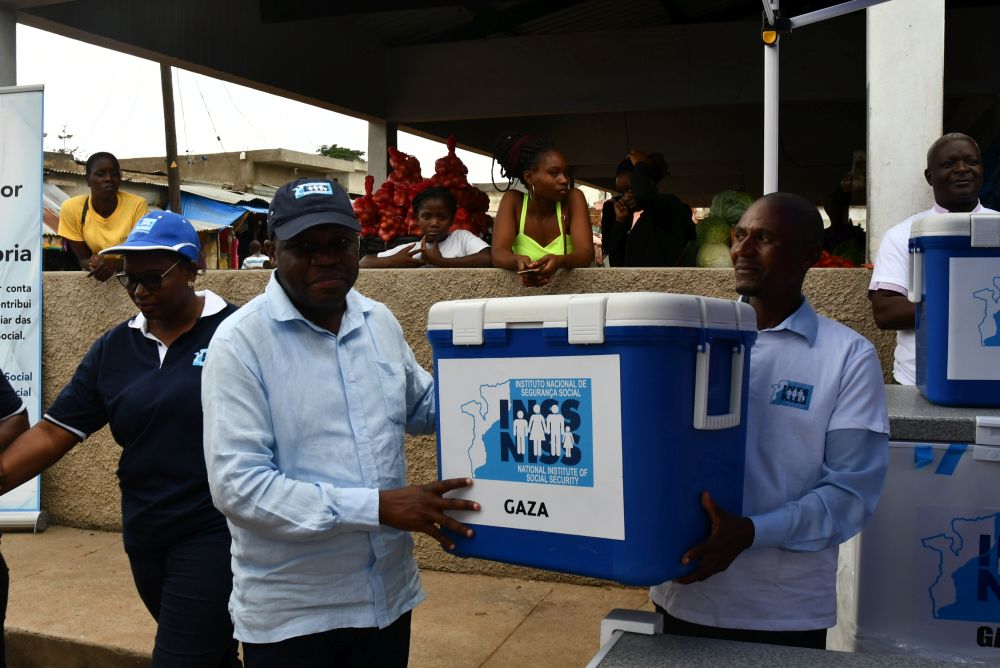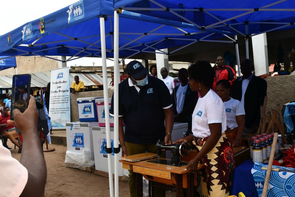 Gaza – (16/05/2023) – Alguns trabalhadores por conta própria (TCP), que foram considerados exemplares na canalização dos seus pagamentos à segurança social nos distritos de Bilene e Massingir, na província de Gaza, beneficiaram de um apoio proveniente do INSS, constituído por 18 máquinas de costura, 18 malas de refrigeração (09 congeladores e igual número de colmans), bem como 30 kits contendo diversos insumos e alfaias agrícolas.