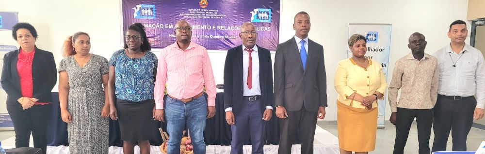 Sofala – (24/10/2023) – 55 técnicos do Instituto Nacional de Segurança Social (INSS), das diferentes áreas de atendimento público provenientes das delegações provinciais das regiões norte, centro e sul do país, estão a ser capacitados, desde Segunda-feira, 23, no distrito de Nhamatanda, província de Sofala, em matérias de relações públicas e atendimento ao público.