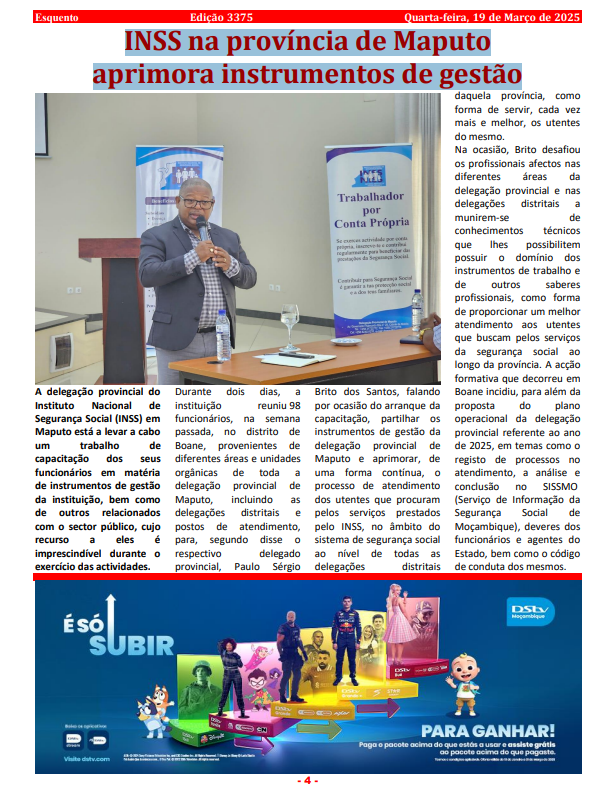 INSS na província de Maputo aprimora instrumentos de gestão – 19 de Março de 2025 – Jornal Esquento
