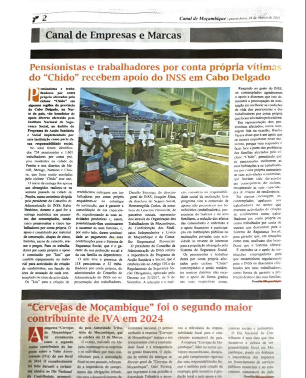 Pensionistas e trabalhadores por conta própria vítimas do “Chido” recebem apoio do INSS em Cabo Delgado – 26 de Março de 2025 – Jornal Canal de Moçambique